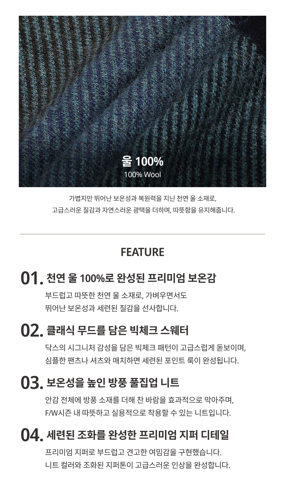 [아울렛] 울100 빅체크 방풍 풀집업 네이비