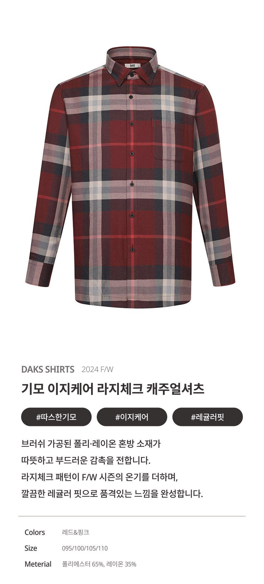 [아울렛] 기모 폴리혼방 이지케어 라지체크 셔츠 레귤러핏