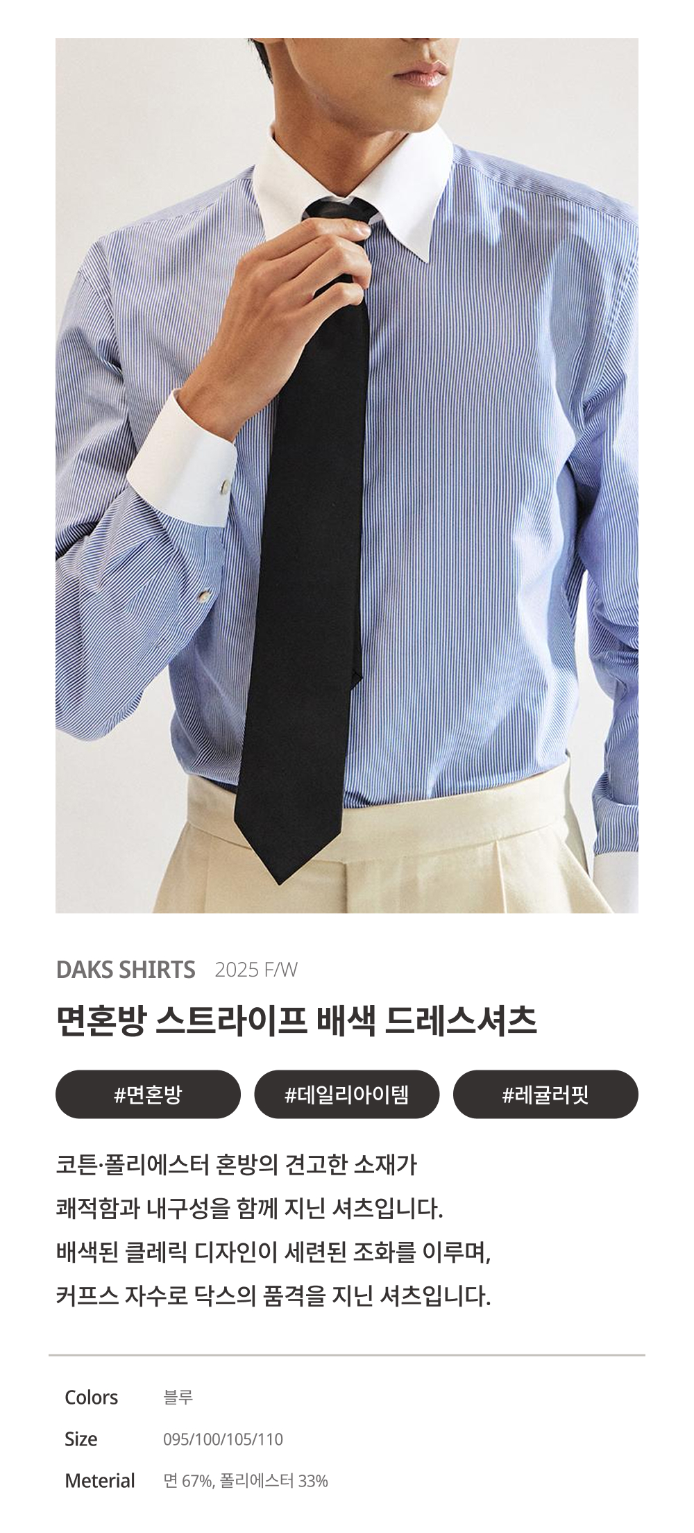 [아울렛] 면혼방 스트라이프 배색 드레스셔츠 레귤러핏