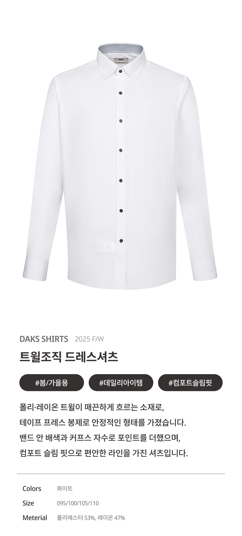 [아울렛] 폴리혼방 트윌조직 드레스셔츠 컴포트슬림핏