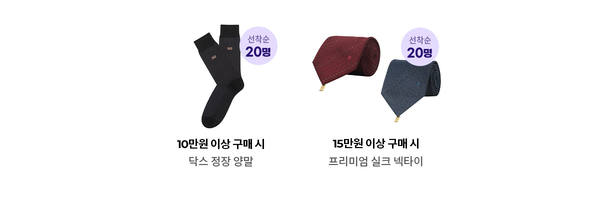 양말과 넥타이 사은품은 중복 지급이 불가하며, 두 가지 사은품 중 구매 금액 기준이 더 큰 사은품 기준으로 발송됩니다.